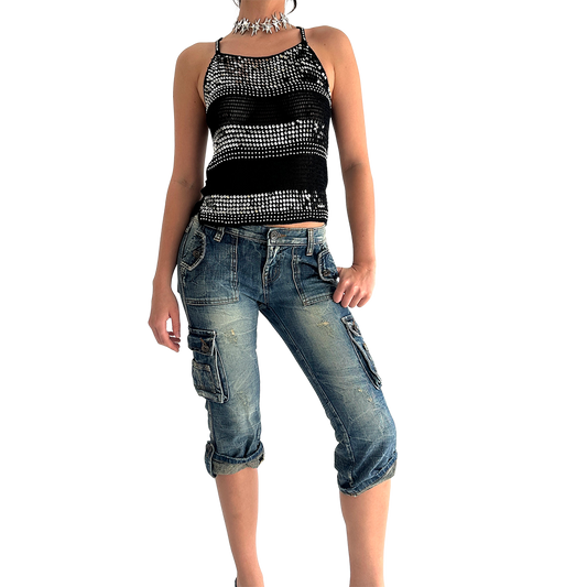 Vintage Denim 3/4 Cargo Capris