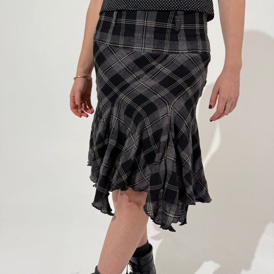 Plaid Handkerchief Midi Skirt