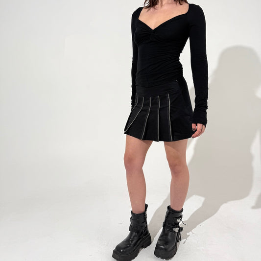 Pleated Zipper Mini Skirt