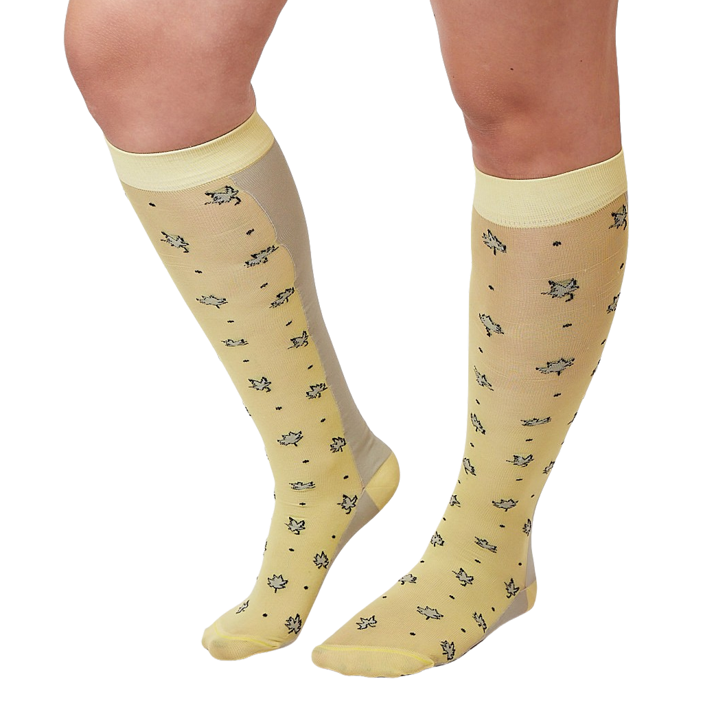 yellow darling leaf pair are sheer pastel yellow fronts with grey leaf motif and grey