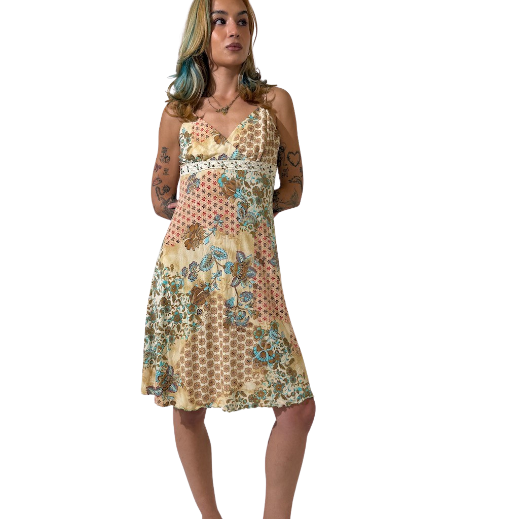 Flowy hem with crochet and beading under bust trim