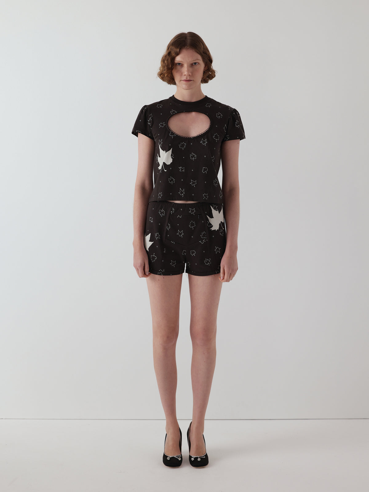 The logo removal baby tee is made with a heavy weight cotton, finished with scalloped edging and an internal bind finish. Shrunken fit and subtle puff sleeve.