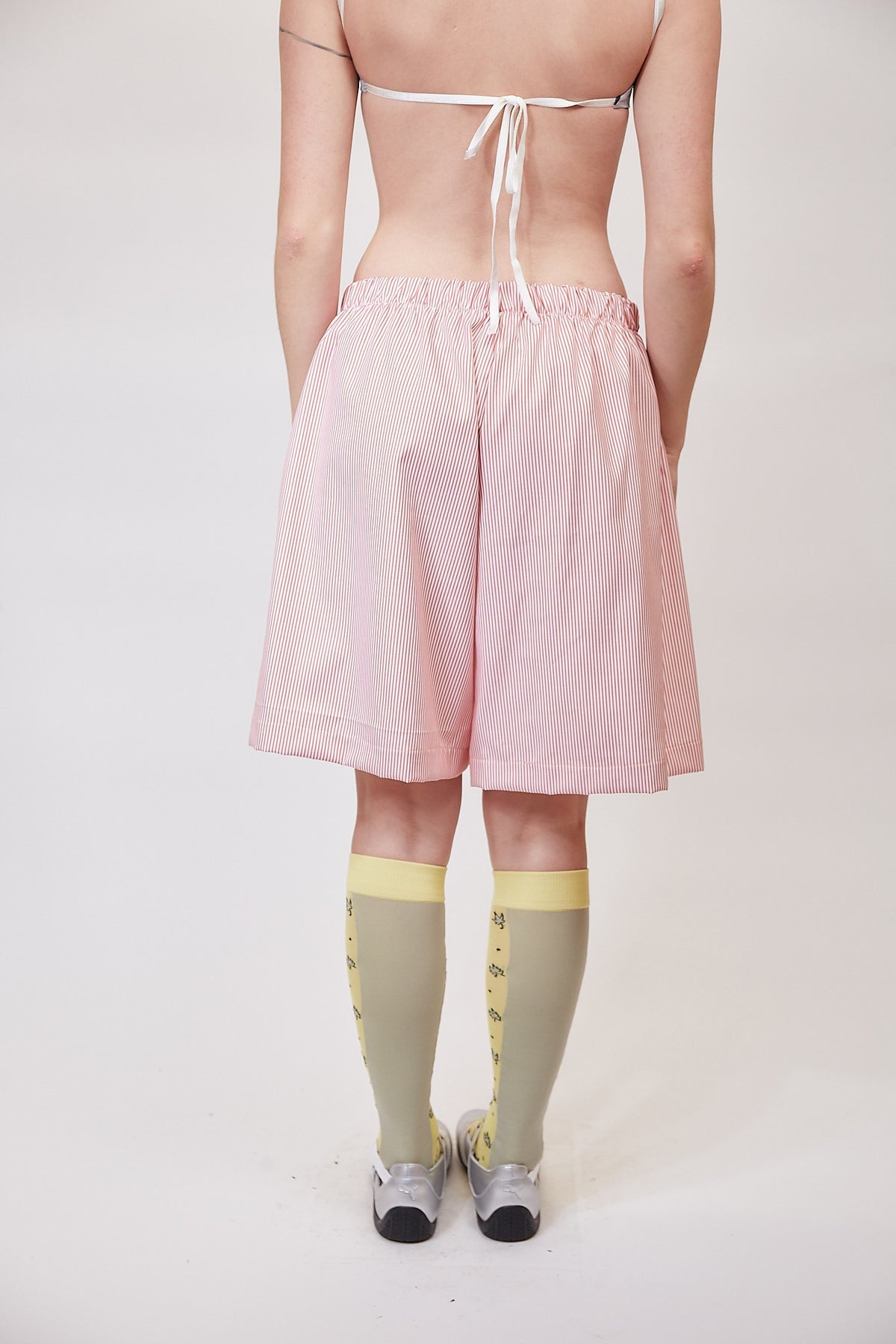 The sleepy boxer is an oversized take on a classic boxer short silhouette. this season they come in a beautiful Japanese dead stock shirting cotton in a lolly stripe, evocative of the paper bags you got at the lolly shop as a kid.