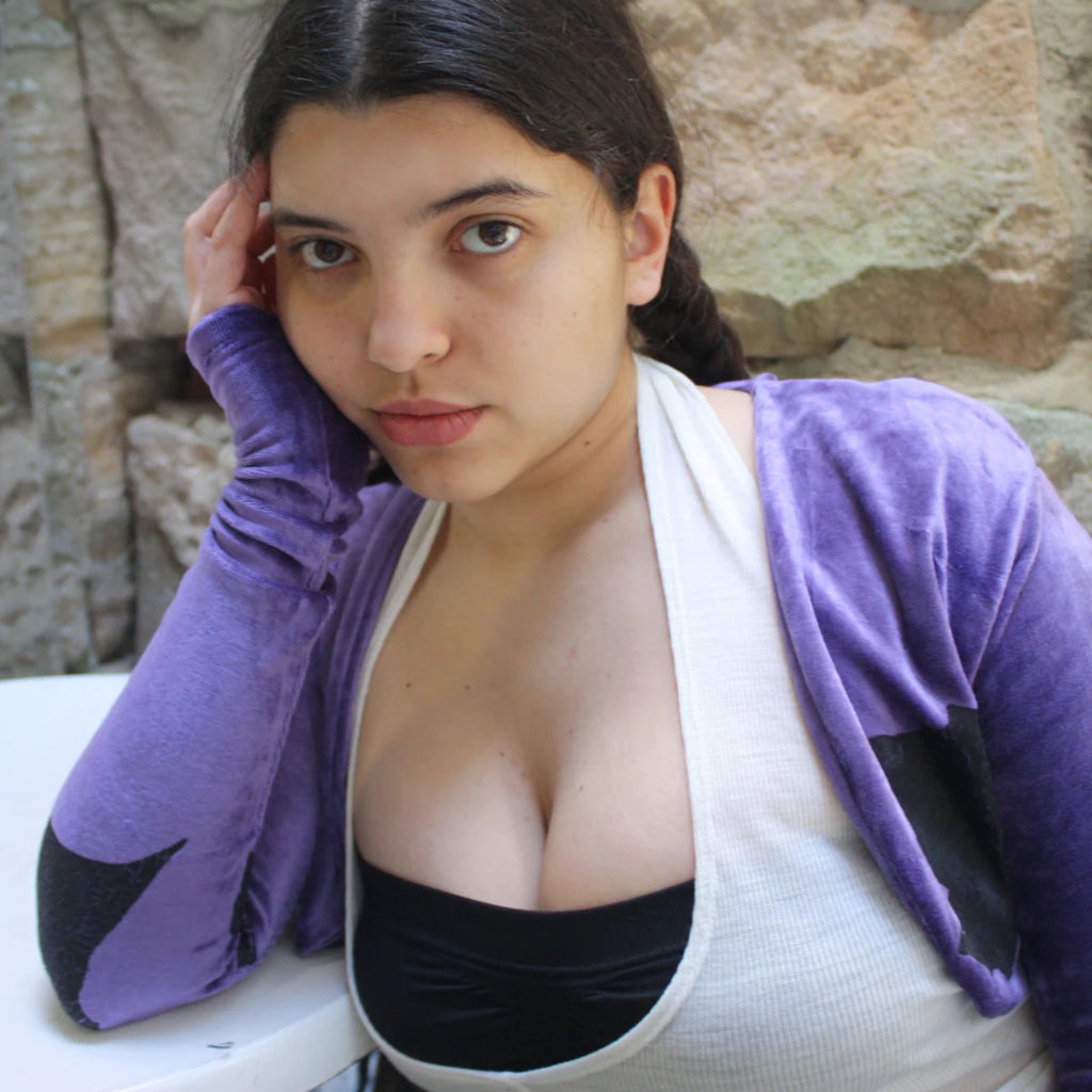 A perfect transeasonal bolero with extra long sleek sleeves in the softest plush bamboo cotton velour. Designed, cut, printed and sewn in Sydney. Handprinted at the RTTS Darlinghurst studio with water-based ink. Extremely soft and comfy.